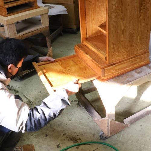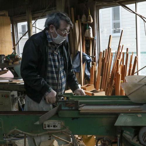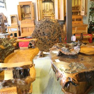 今日では伐採も土埋木の競りも禁止されていますが、古典木工では多くの原木を大切に保管していました。