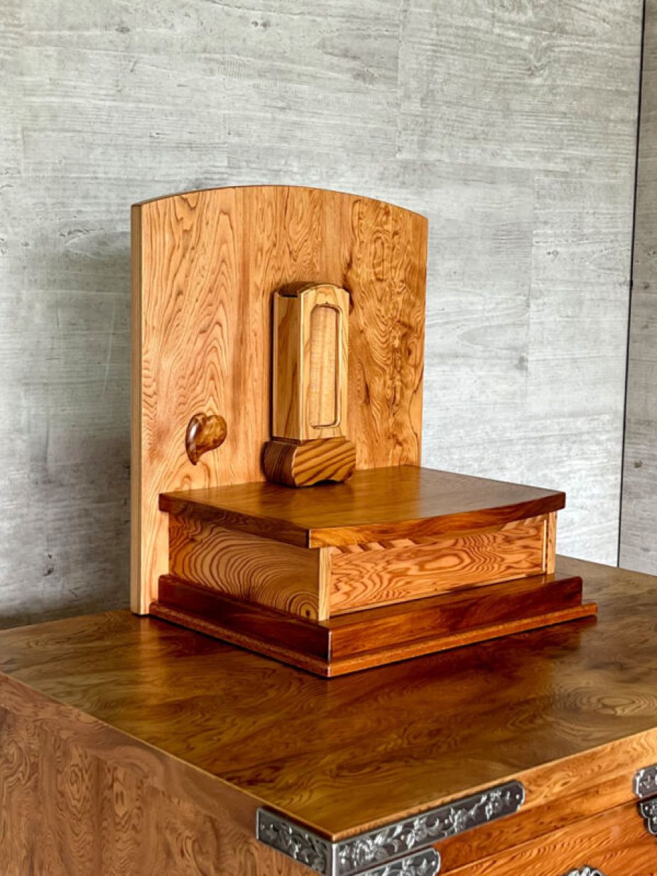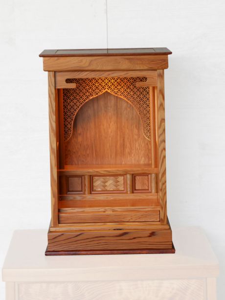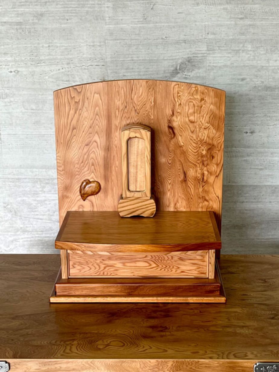 独特な光の陰影が美しいミニ仏壇。小さいながらも気品にあふれています。 ハート型のアクセントが可愛らしく、どんな場所に安置しても空間に溶け込みます。