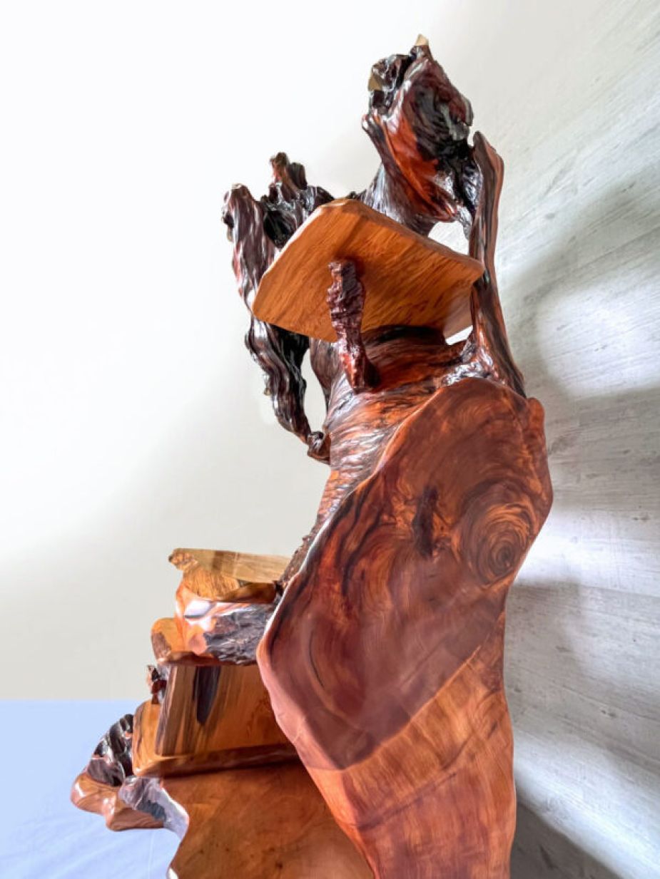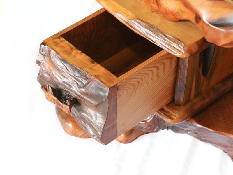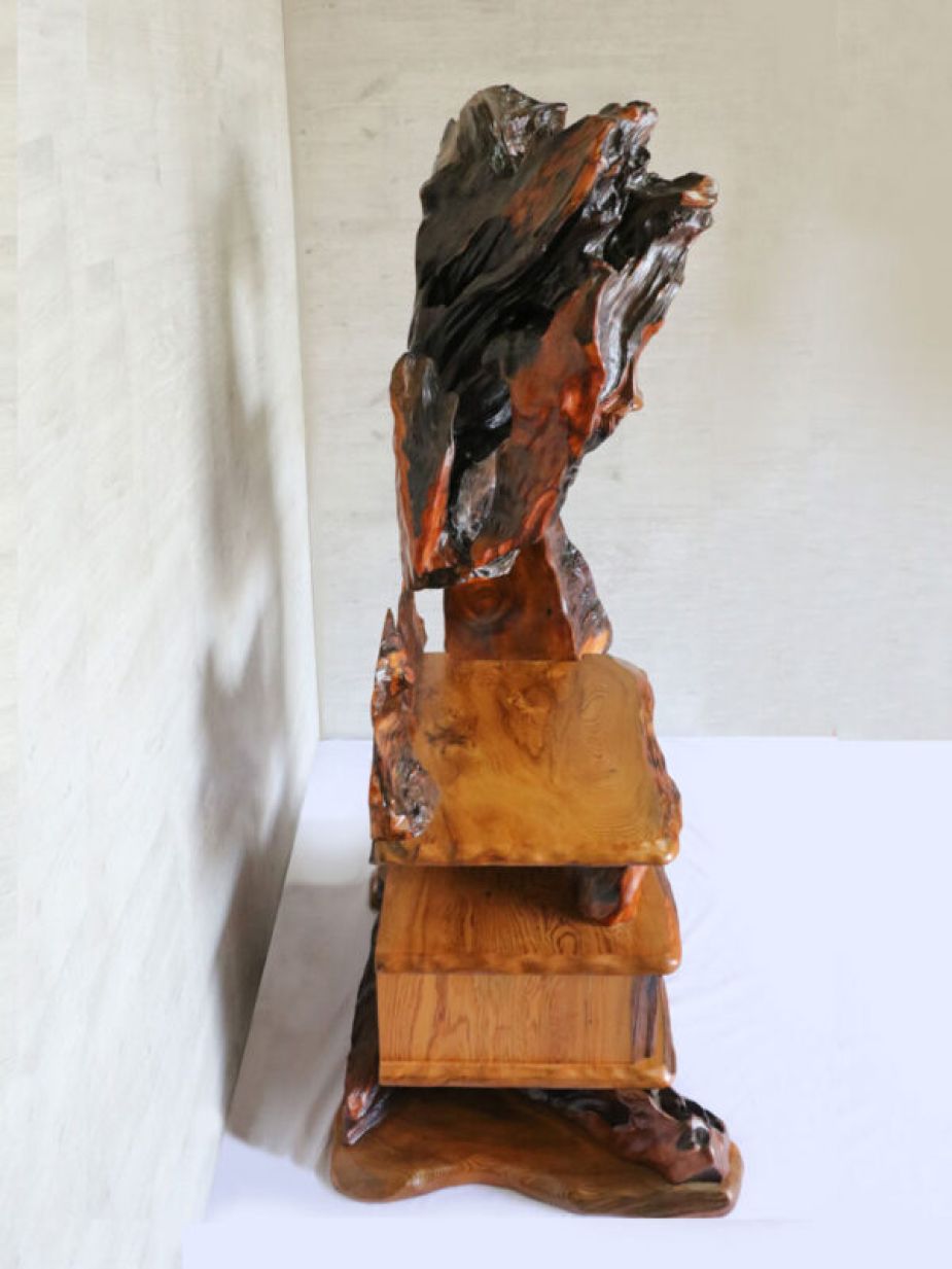 屋久杉の根株を大胆に使った飾り棚です。 これほど大きな切り株を見ているとどれほど雄大な屋久杉だったか、想像を絶する思いです。 一体どのような形をした木だったのか千年の時を感じることができる一品です。