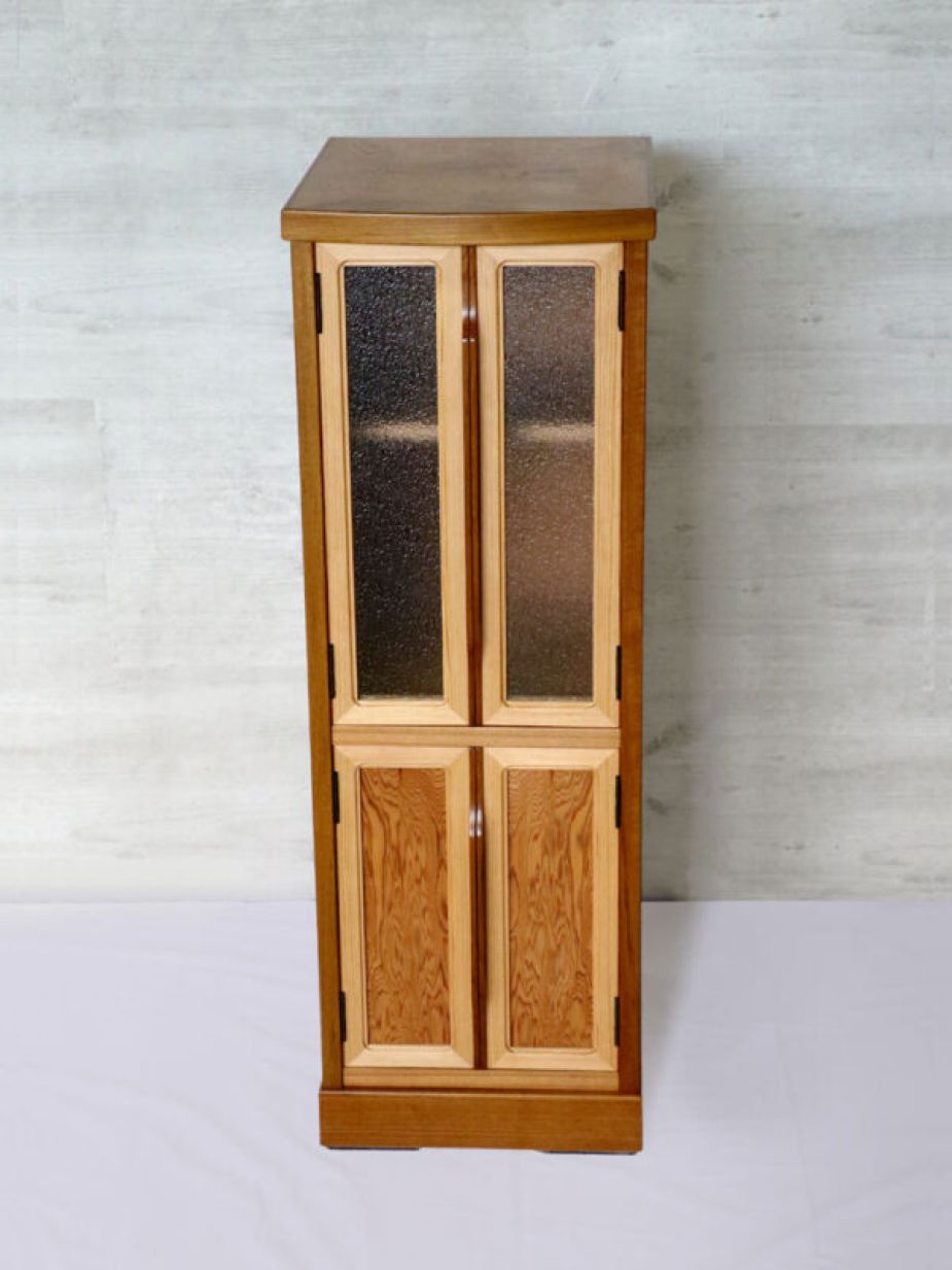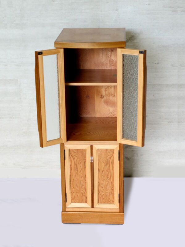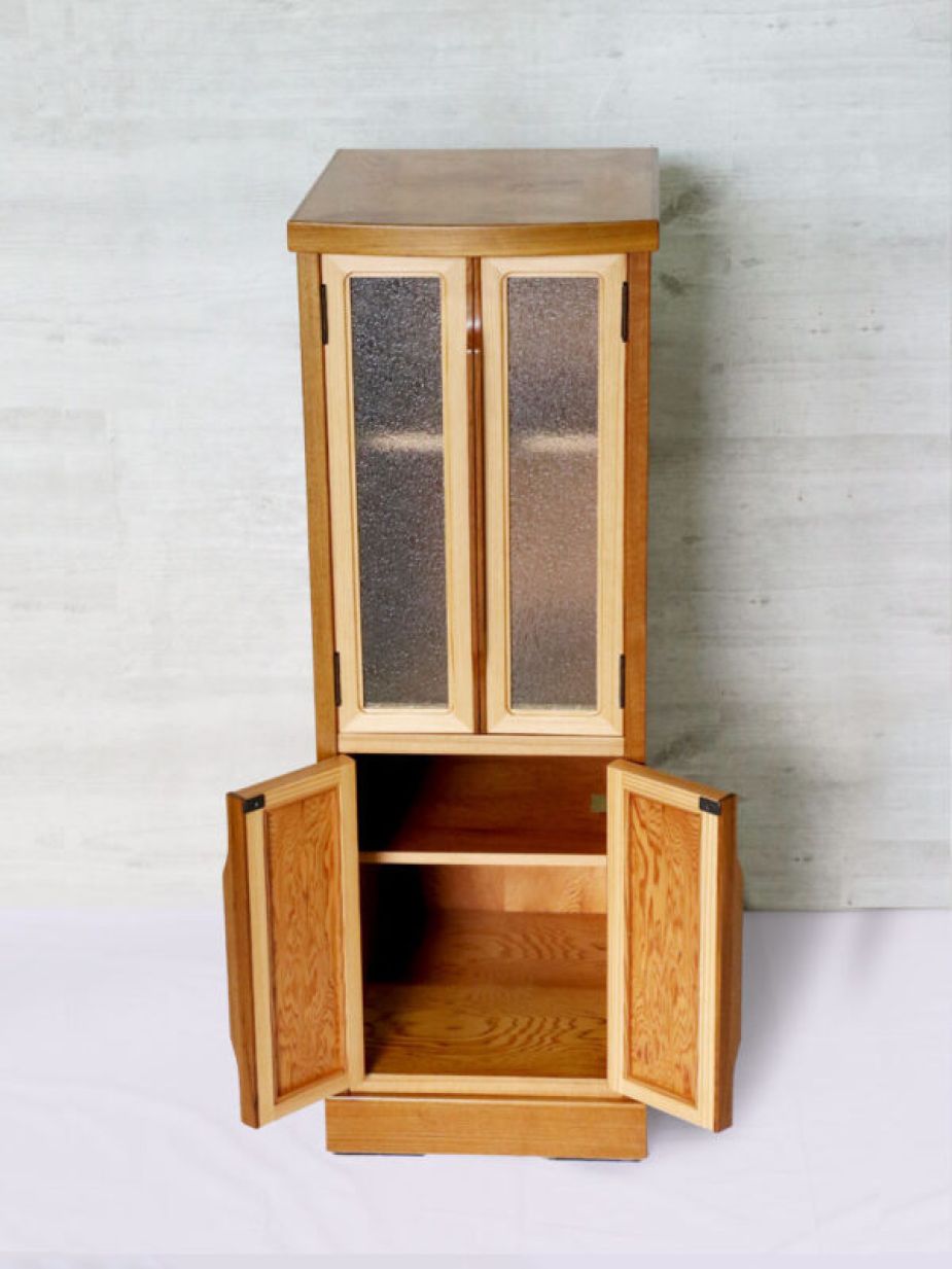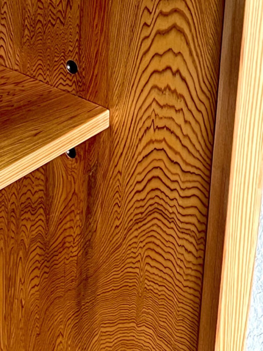 ニッチなスペースを活用できる人気のスリム棚を屋久杉でしつらえました。