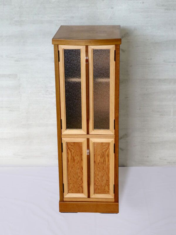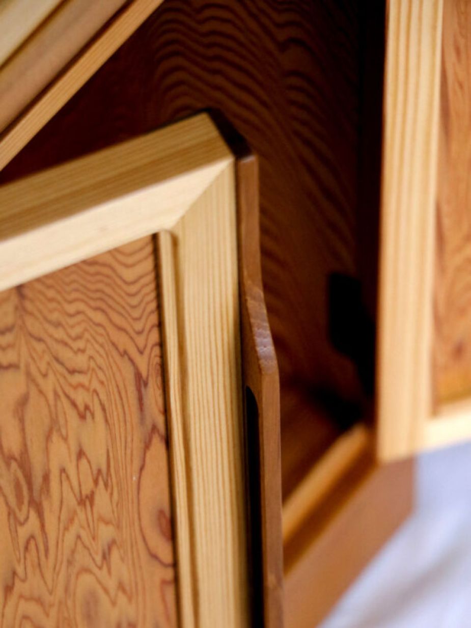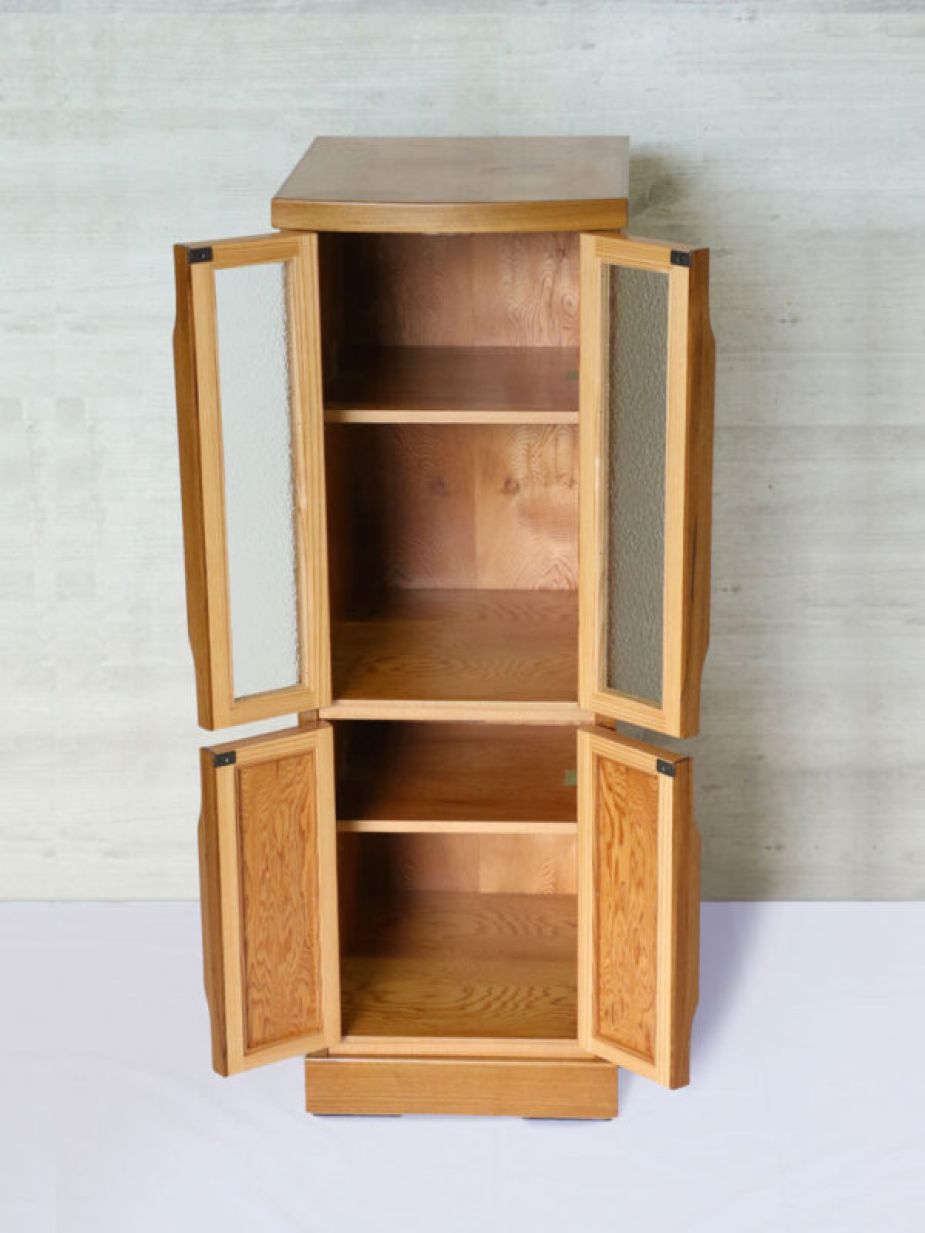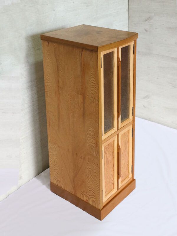 ニッチなスペースを活用できる人気のスリム棚を屋久杉でしつらえました。