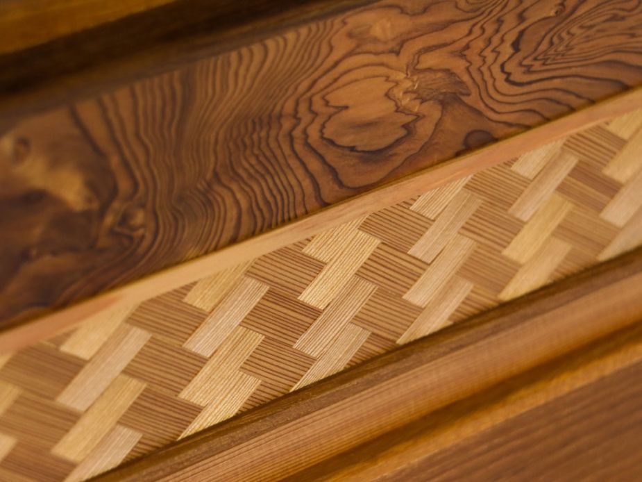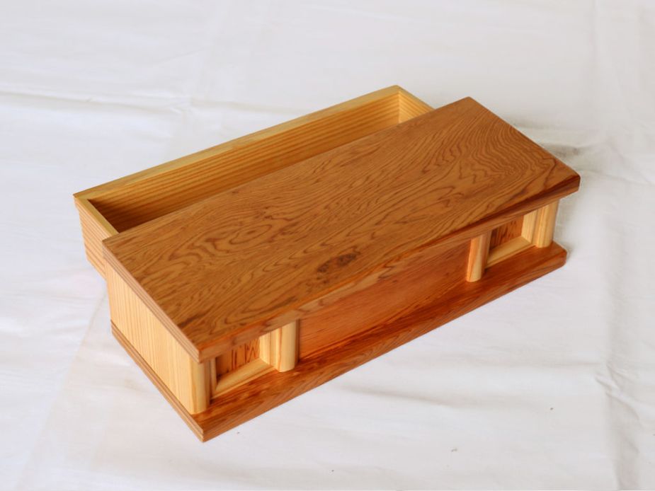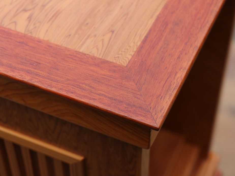 ● 天板と台座は、正倉院宝物の唐木細工でも多く見られる紫檀で縁取りました。