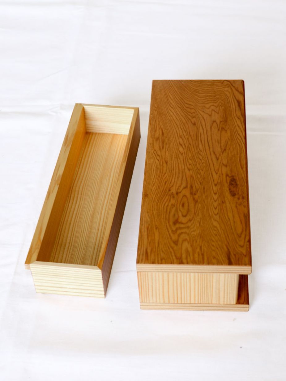 世界遺産屋久島で標高500m以上に生息し、樹齢千年以上のものだけを屋久杉と呼びます。古典木工では原木から仕入れ、乾燥、木取りのすべての工程を自社で行うため原木から製品になるまで7年~10年という長い歳月がかかります。屋久杉ならではの重厚な色合いと繊細な木目は、自然の織り成す究極の芸術品です。この貴重な木を使って仕上げたお仏壇は、まさに先祖の御霊を祀るにふさわしい舞台と言えるでしょう。今の住まいにマッチした家具調仏壇は、コンパクトかつシンプルですが、屋久杉という素材を纏うことで、美しく、重厚な和みを暮らしの中に届けてくれます。